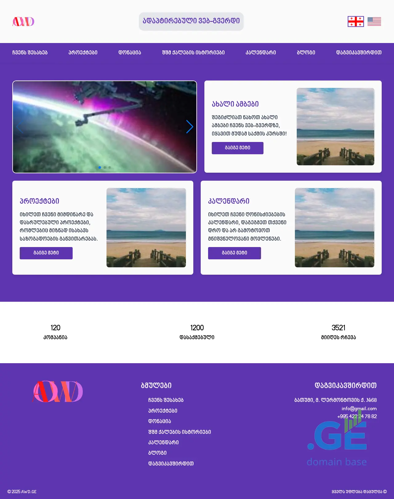 Aowd.ge serves as the online platform for the Alliance of Women with Disabilities, offering resources and advice for companies, employees, job seekers, and organizations. Launched in late 2025, the website provides links and information in Georgian, aiming to connect and support women with disabilities within the Georgian employment landscape. While lacking social media presence and explicit contact information on the analyzed pages, the site utilizes HTTPS, ensuring a secure browsing experience. Registered by hostnodes under the name of "shshm qalTa aliansi", the platform is designed to serve as a central resource for this demographic. Currently, user ratings and reviews are unavailable for evaluation.