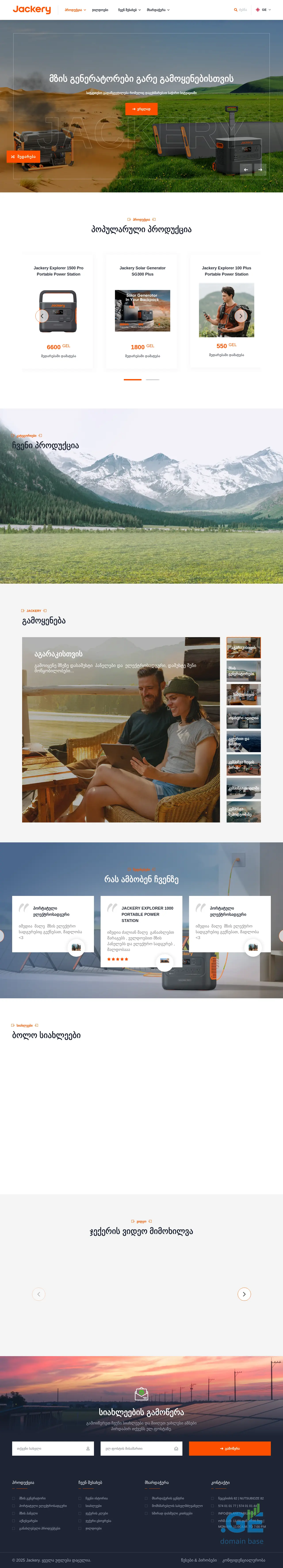 Jackery.ge offers a range of portable power stations and solar generators designed for outdoor use, as indicated by its headings and product listings. Established in August 2023, the site provides direct contact options through local phone numbers. While specific user ratings are not yet available, the website appears focused on product information and customer engagement through sections like "Our Products" and "What They Say About Us." The site is secured with HTTPS, demonstrating a commitment to user data protection.