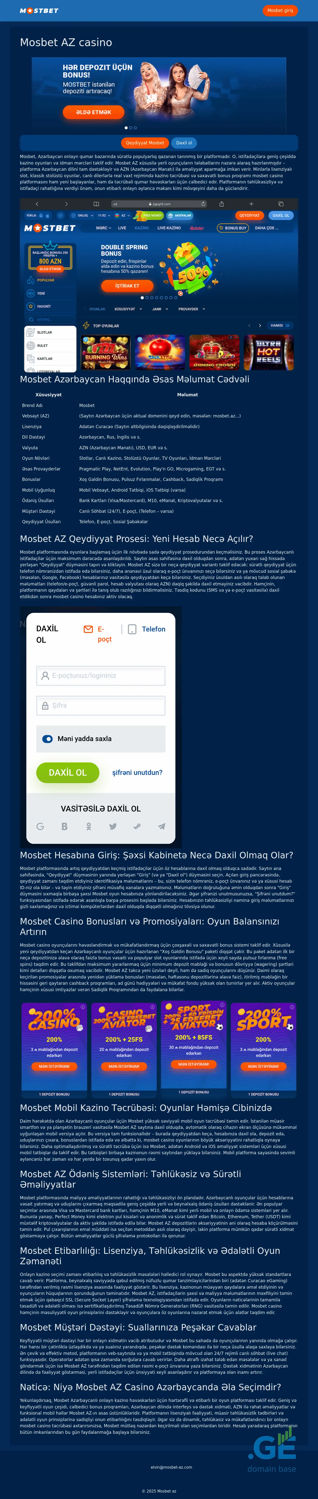 Несмотря на то, что домен "dedoplistskaro.ge" намекает на грузинскую направленность, контент веб-сайта и мета-описание ясно указывают на то, что это онлайн-казино, ориентированное на азербайджанский рынок, предлагающее широкий выбор слотов и игр с живыми дилерами. Сайт, похоже, является недавним дополнением, созданным в марте 2024 года, и использует WordPress в качестве платформы. Хотя он зарегистрирован через ge.domains, его операционная деятельность ориентирована за пределами Грузии, на игроков в Азербайджане, ищущих бонусы, мобильную совместимость и безопасные варианты оплаты.
