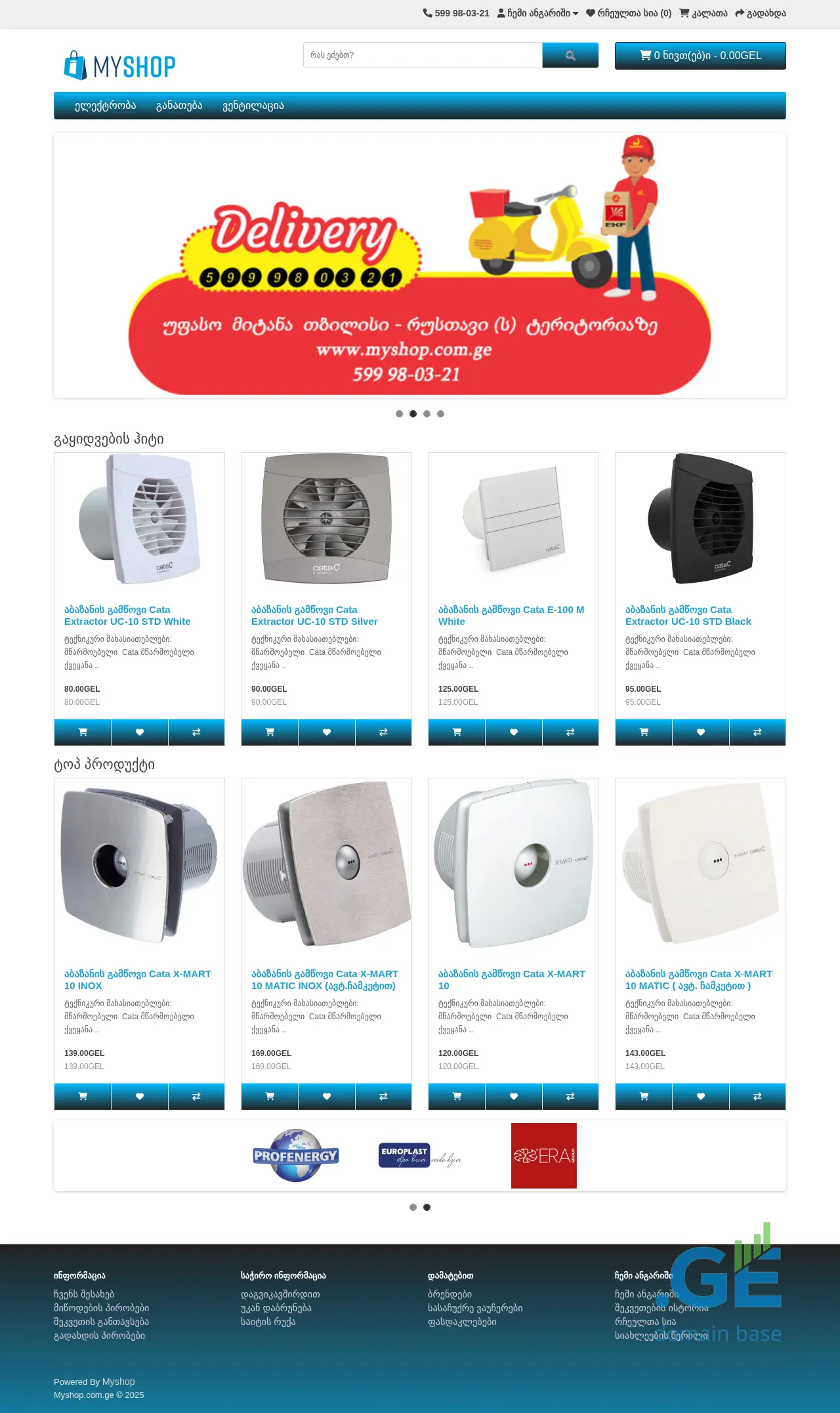Myshop.com.ge, по всей видимости, является платформой электронной коммерции, специализирующейся на товарах для дома и бытовой технике на грузинском рынке. Наличие заголовков "Sales Hit" и "Top Product", а также явный акцент на различных вытяжках бренда Cata, предполагает, что компания специализируется на решениях для вентиляции кухни и ванной комнаты. Несмотря на то, что сайт относительно новый, запущен в начале 2023 года и использует стандартные инструменты аналитики, такие как Google Analytics и Google Tag Manager, его прямой подход к электронной коммерции, без легкодоступных ссылок на социальные сети или контактных телефонов в его каталоге, указывает на современную, ориентированную на цифровые технологии операционную модель, распространенную среди новых грузинских онлайн-ритейлеров.