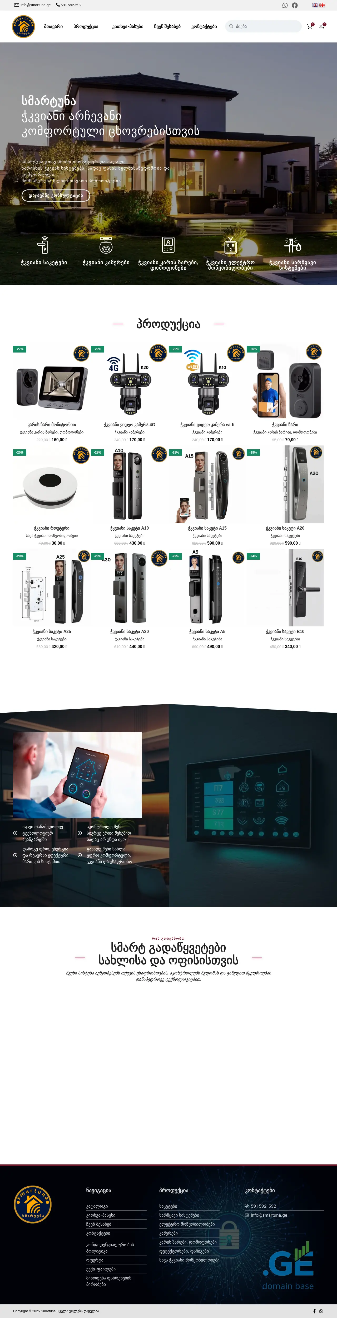 Smartuna.ge – это грузинская платформа электронной коммерции, специализирующаяся на решениях для умного дома и современных технологиях, с акцентом на повышение безопасности, комфорта и дистанционного управления жилыми помещениями. Сайт предлагает ряд интеллектуальных устройств, таких как умные замки, камеры, дверные звонки и системы орошения, ориентированных на людей, стремящихся модернизировать свои дома и офисы. Несмотря на то, что домен недавно зарегистрирован и не имеет отзывов пользователей, его присутствие в Facebook указывает на стратегию взаимодействия, соответствующую распространенным практикам цифрового маркетинга в Грузии. Smartuna.ge, работающий на WordPress, позиционирует себя как ключевой поставщик удобных, технологичных решений для улучшения образа жизни на растущем грузинском рынке умных технологий.